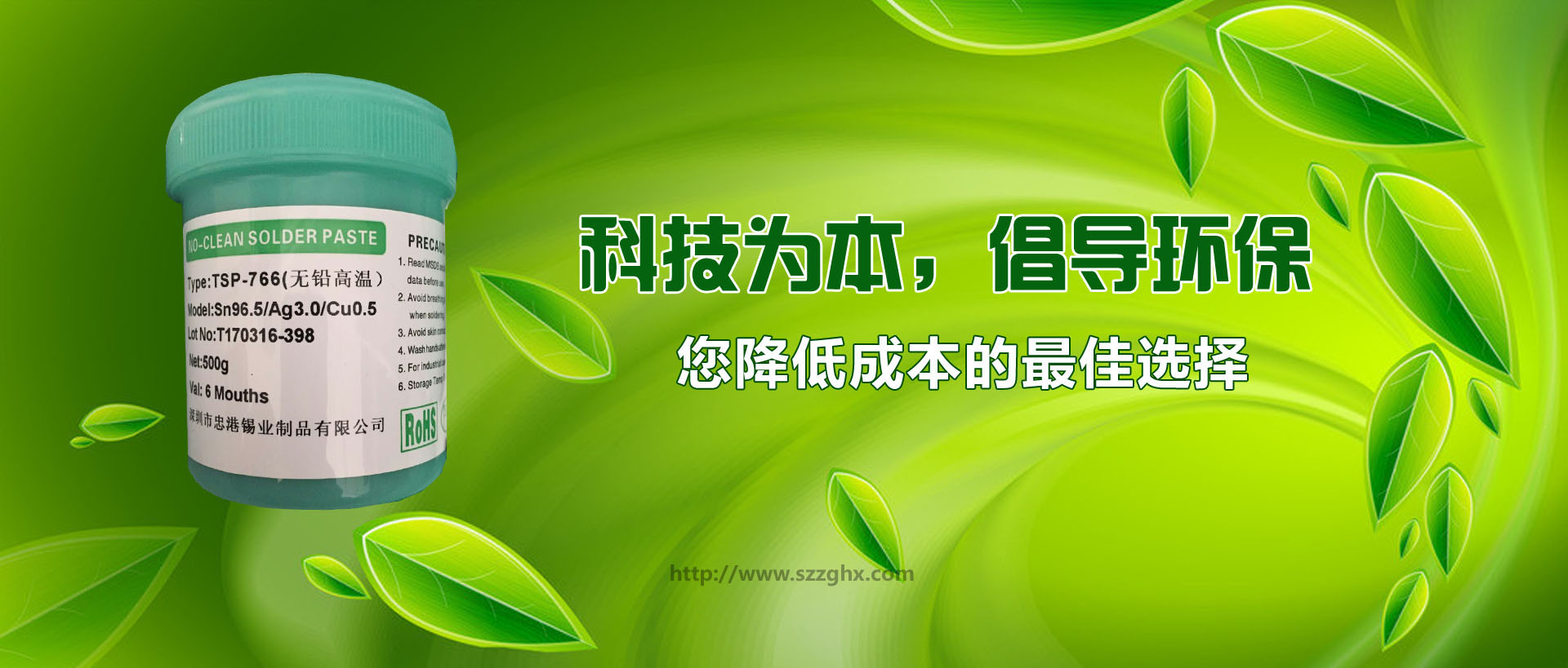 深圳市忠港錫業(yè)制品有限公司以專業(yè)生產(chǎn)、經(jīng)營各種規(guī)格和用途的無鉛焊錫,環(huán)保焊錫,焊錫絲,焊錫條,焊錫線,焊錫膏,低溫錫線,焊鋁錫絲,不銹鋼焊錫絲,無鉛錫條,無鉛錫絲,無鉛錫膏, 無鉛低溫焊錫絲,無鉛免洗助焊劑,環(huán)保助焊劑,焊鋁助焊劑,焊鋁錫條,水溶性焊錫絲,不銹鋼助焊劑等為主的電子化工輔料企業(yè)。無鉛產(chǎn)品己通過SGS檢測(cè),并獲中國中輕產(chǎn)品[質(zhì)量、信譽(yù)雙保障示范單位]和國際ISO9001:2000質(zhì)量認(rèn)證。 自成立以來,以優(yōu)良的產(chǎn)品品質(zhì)、良好的企業(yè)信譽(yù)和開拓進(jìn)取的企業(yè)精神,建立了良好的社會(huì)關(guān)系。經(jīng)過多年的發(fā)展和努力,目前廣州偵探公司已經(jīng)在國內(nèi)已建立穩(wěn)固的銷售網(wǎng)絡(luò)和系統(tǒng),贏得了行業(yè)內(nèi)廣大客戶的贊譽(yù),并倍受用戶信賴,現(xiàn)正成為珠江三角洲地區(qū)最具實(shí)力的專業(yè)焊錫條、焊錫絲、錫膏、助焊劑制造供應(yīng)商之一。